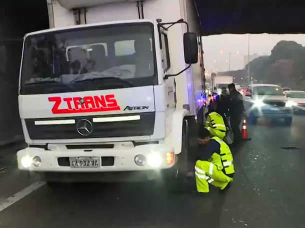 Un incidente vial provocó importantes demoras en la circulación durante la mañana del lunes en la Avenida General Paz, luego de que un camión de gran porte impactara contra un puente y quedara atrapado en plena hora pico.